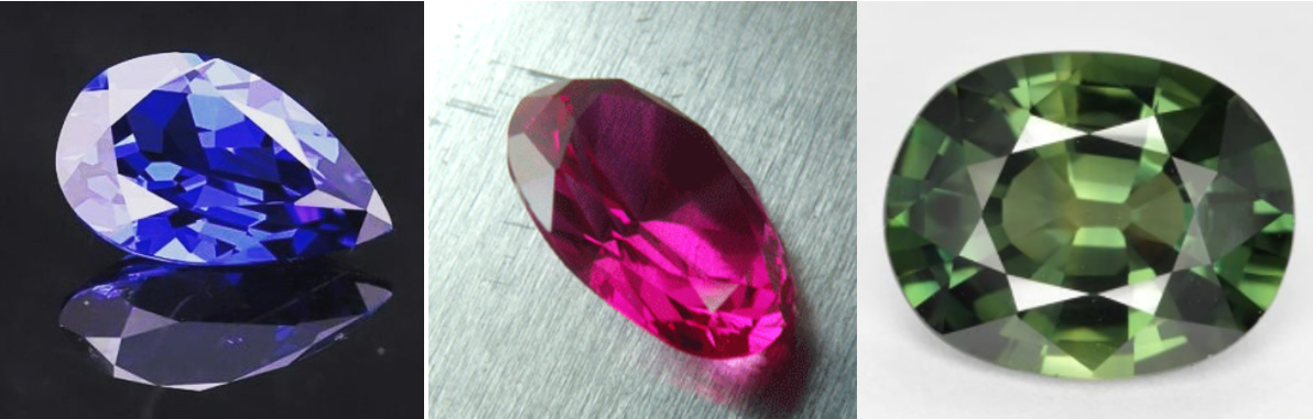 - 사파이어: 붉은색을 제외한 모든 색의 코런덤