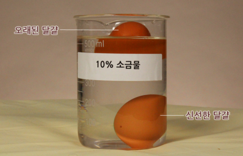 - 신선한 달걀 → 물속에 가라앉는다